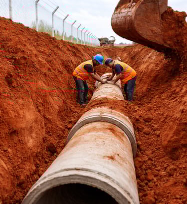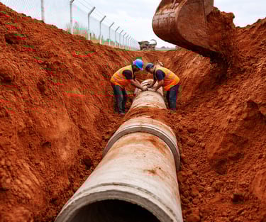 Nossa atuação envolve todas as etapas necessárias à implantação desses sistemas, incluindo movimentação de terra, execução de redes enterradas, estruturas hidráulicas, bases técnicas, instalações complementares e serviços auxiliares, sempre com planejamento técnico, controle rigoroso da execução e acompanhamento permanente das frentes de trabalho.